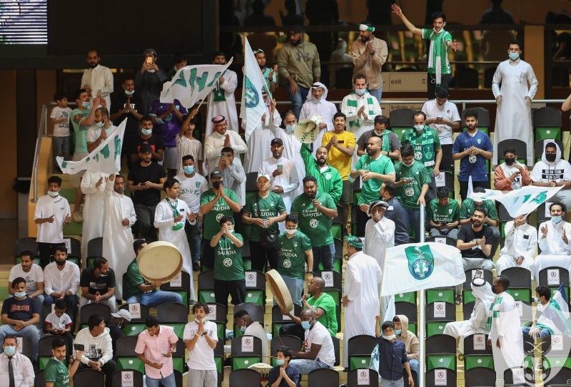 وحضرت جماهير الأهلي إلى الصالة بكثافة وكانت خلف فوز فريقهم الأهلي على الهلال.