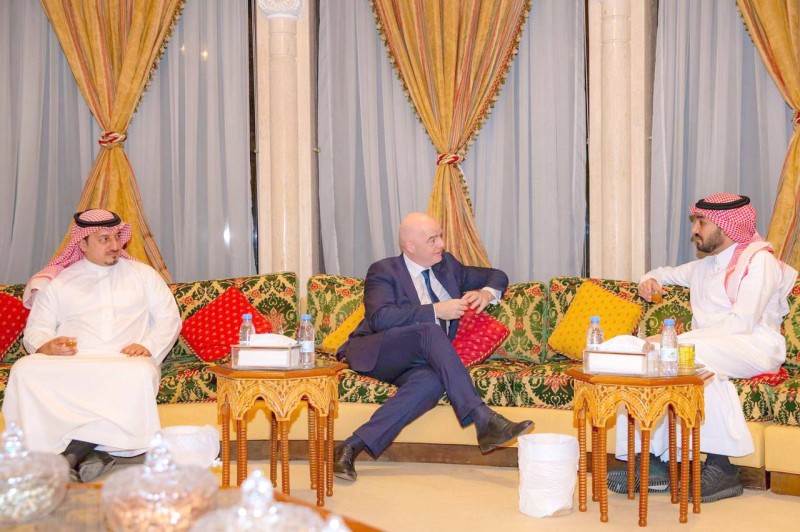 رئيس الفيفا يتوسط وزير الرياضة ورئيس اتحاد القدم.