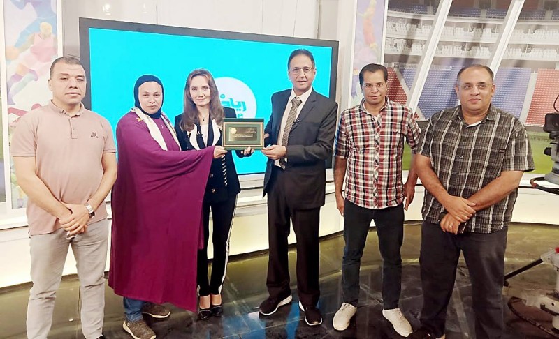 الزغيبي مع طاقم قناة النيل الرياضية.