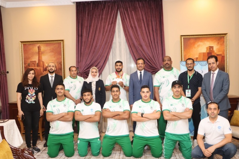 وقدّمت عضو مجلس إدارة الاتحاد السعودي لرفع الأثقال رئيس لجنة المرأة رئيسة البعثة فوزية أحمد حوباني شكرها وتقديرها لنائب السفير على كرم الضيافة، ومتابعته المستمرة لاحتياجات بعثة المنتخب الوطني، مشيدة بالدور الكبير الذي تقدمه السفارة السعودية لبعثة المنتخب خلال وجودها في أوزبكستان.
