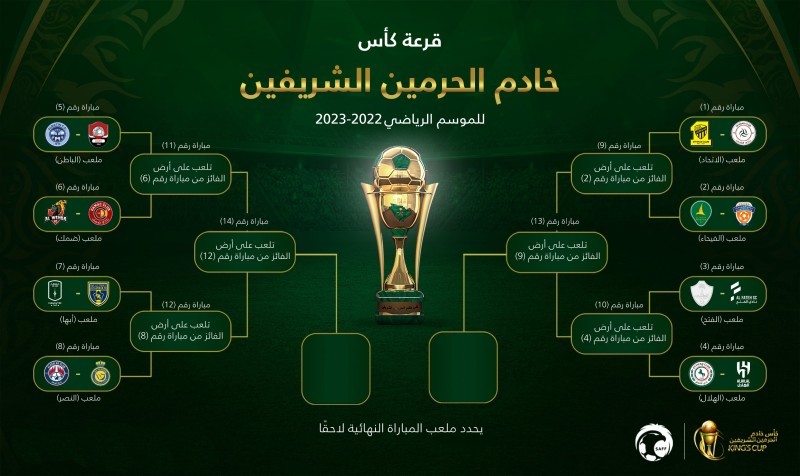 أسفرت نتائج قرعة بطولة كأس خادم الحرمين الشريفين للموسم الرياضي 2023/2022 عن قمة منتظرة بين الاتحاد والشباب في دور الـ16 من البطولة.