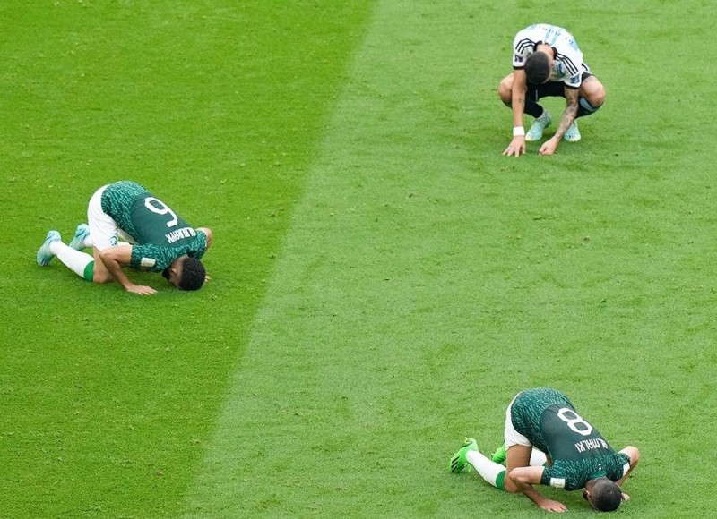 ووصفت صحيفة «لا ناسيون» الأرجنتينية خسارة منتخبها أمام الأخضر السعودي بـ«العاصفة الرملية» التي خيّمت في أفق مونديال 2022، وقالت الصحيفة: الصراخ، العناق، العاطفة، القبضة المرفوعة، الراحة، حضور مارادونا المطلق، ذكرى دون دييغو ودونيا توتا، الدفع نحو ليونيل، الإحصاءات، السجل، التاريخ، التأكيد، القوة، الانقطاع عن رعب المسرح، اختنق كل ذلك أمام السعودية في استاد لوسيل.