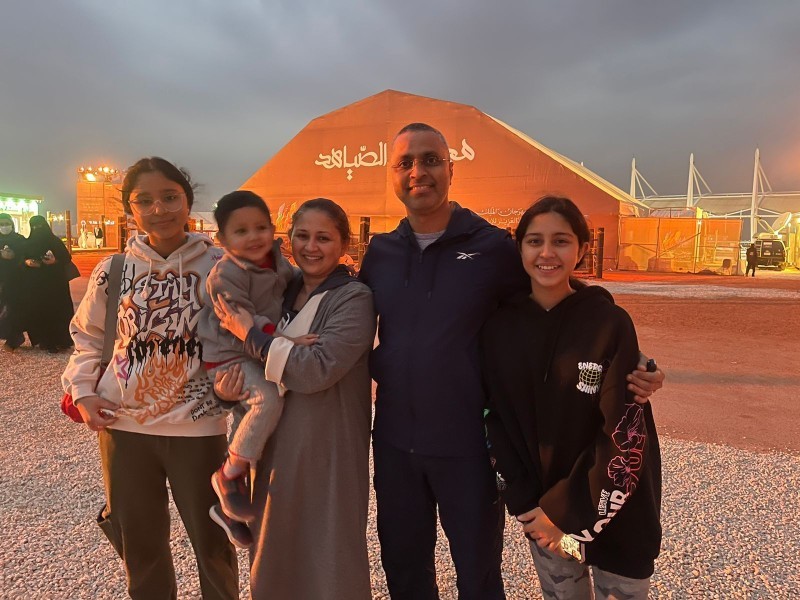 حرصت أسرة كندية على الحضور إلى مهرجان الملك عبدالعزيز للإبل في نسخته السابعة التي تقام تحت شعار «همة طويق» لتعريف أبنائها على أنواع الإبل ومشاهدتها على أرض الواقع.