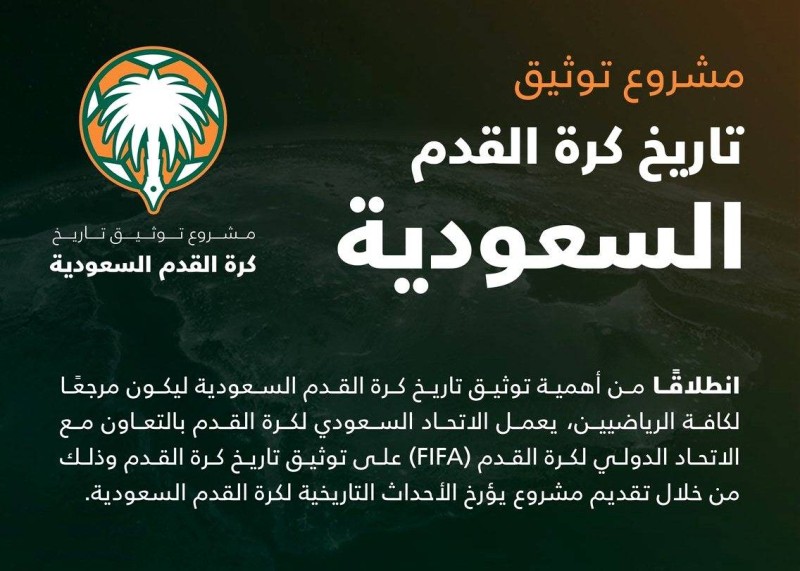 أعلن الاتحاد السعودي لكرة القدم مشروع توثيق تاريخ كرة القدم السعودية. وقال الاتحاد عبر بيان، إنه انطلاقاً من أهمية توثيق تاريخ كرة القدم السعودية ليكون مرجعاً لكافة الرياضيين، يعمل الاتحاد السعودي لكرة القدم بالتعاون مع الاتحاد الدولي لكرة القدم (FIFA) على توثيق تاريخ كرة القدم، وذلك من خلال تقديم مشروع يؤرخ الأحداث التاريخية لكرة القدم السعودية.