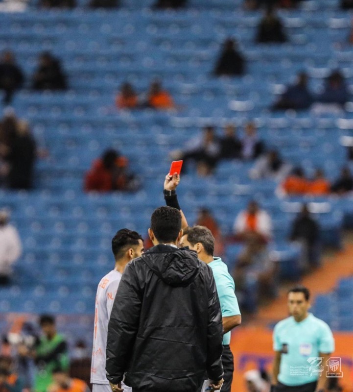بينما أكد صحة البطاقة الحمراء التي منحها للاعب الفيحاء عبدالرحمن السفري، بعد تدخله على مدافع الاتحاد طارق حامد.