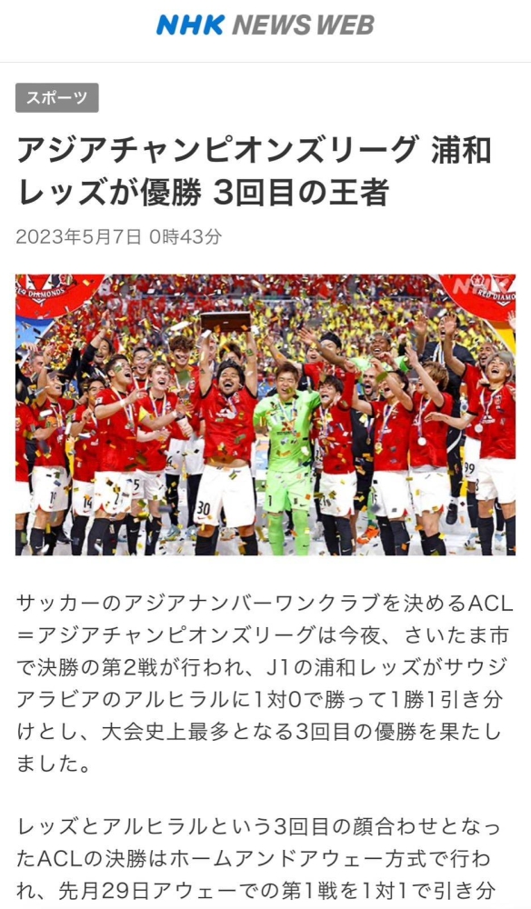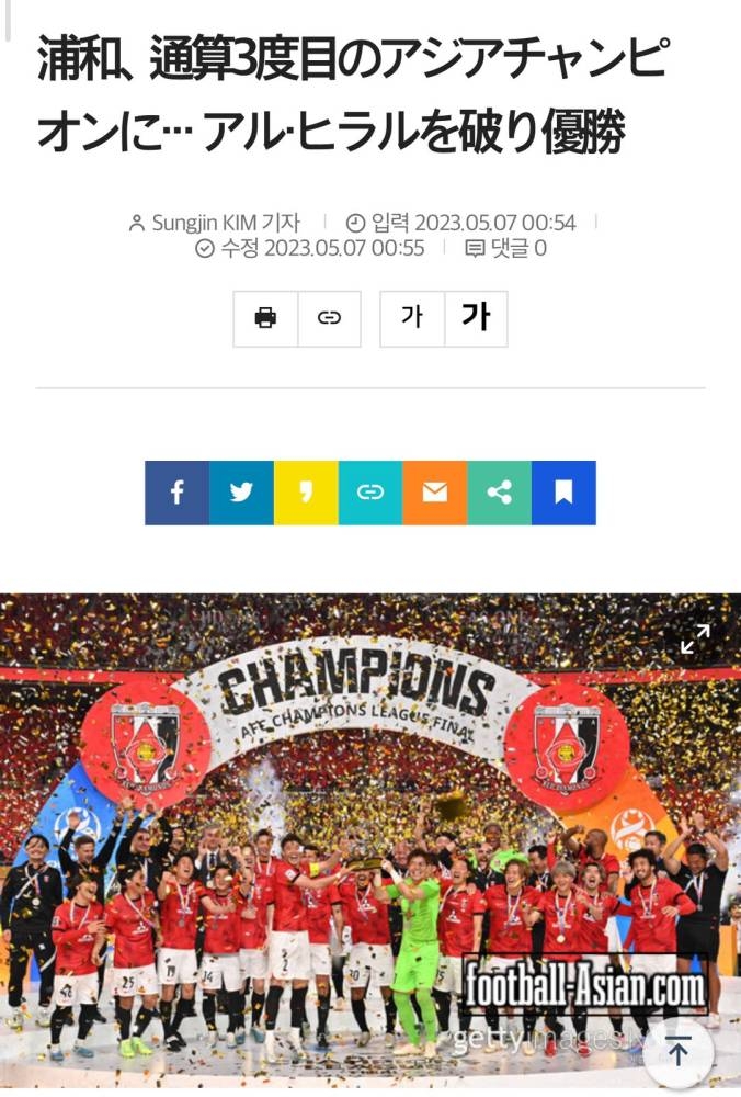 وأطلقت الصحف اليابانية على فريق أوراوا ريد دياموندز لقب زعيم آسيا، بعد انفراده بالرقم القياسي لعدد مرات التتويج ببطولة دوري أبطال آسيا منذ اعتماد مسمّاها الحالي 2002ـ2003. وأوضحت الصحف: أن الماسات الحمراء أعلن نفسه زعيمًا لآسيا، بعدما أحرز لقبه الثاني خلال 6 أعوام، والثالث إجمالًا.
