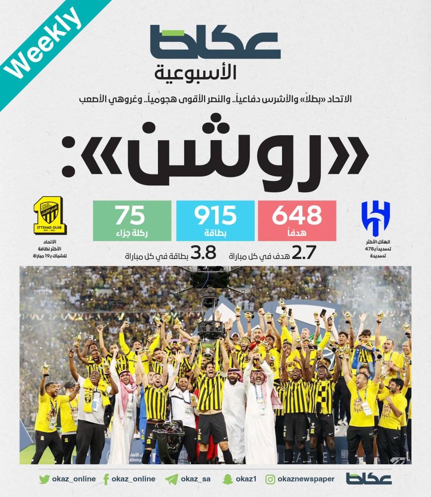 أُسدِل الستار على موسم 2022-2023 من بطولة الدوري السعودي للمحترفين «دوري روشن»، حيث تُوّج نادي الاتحاد باللقب التاسع في تاريخه، بعد منافسة قوية استمرت مع نادي النصر حتى الجولة قبل الأخيرة، فيما هبط فريقا العدالة والباطن إلى دوري الدرجة الأولى السعودي «دوري يلو». وحل نادي الهلال في المركز الثالث بجدول الترتيب، بعدما سيطر على لقب الدوري السعودي خلال المواسم الثلاثة السابقة، بينما حل الشباب رابعًا، بفارق نقطة وحيدة عن فريق التعاون، الذي يُعَدّ «الحصان الأسود» لهذا الموسم. وشهدت منافسات دوري روشن السعودي إحراز 648 هدفاً خلال 240 مباراة، بمعدل 2.7 هدف في كل مباراة، وإشهار 874 بطاقة صفراء، و41 بطاقة حمراء، وتم احتساب 75 ركلة جزاء، وتمكنت الفرق من الحفاظ على نظافة شباكها 138 مرة.
