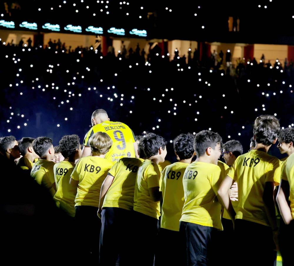 وشارك الرئيس أنمار الحائلي اللاعب بنزيما استعراض الكرة الذهبية أمام الجماهير، وقام بعد ذلك بتوزيع الكرات للجماهير، ومن ثم عاشت الجماهير أجواءً احتفالية رائعة بإطلاق عروض الليزر والموسيقى التي عاشت معها الجماهير الفرحة بالتعاقد مع النجم العالمي بنزيما، واختتمت الاحتفالية بتقديم كأس دوري روشن السعودي للمحترفين، وكأس السوبر التي حصدها العميد في موسم 2023 .