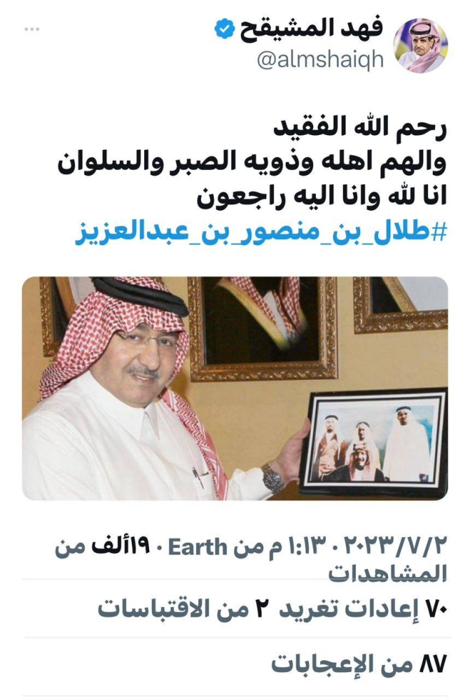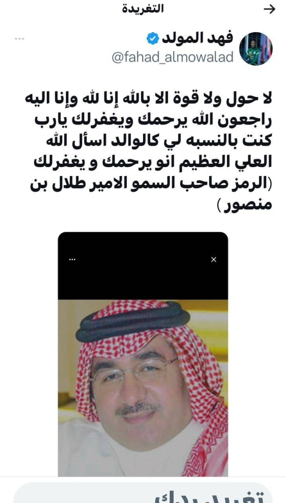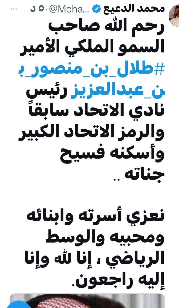 نعت شخصيات رياضية رئيس الاتحاد السابق الأمير طلال بن منصور بعد وفاته رحمه الله، حيث كتب رئيس الاتحاد