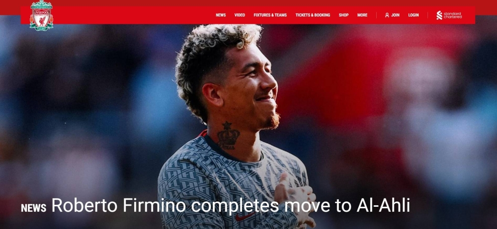 قدم نادي ليفربول الإنجليزي عبر موقعه الرسمي شكره للاعبه البرازيلي السابق روبرتو فيرمينو متمنياً له التوفيق في وجهته القادمة مع النادي الأهلي السعودي.
