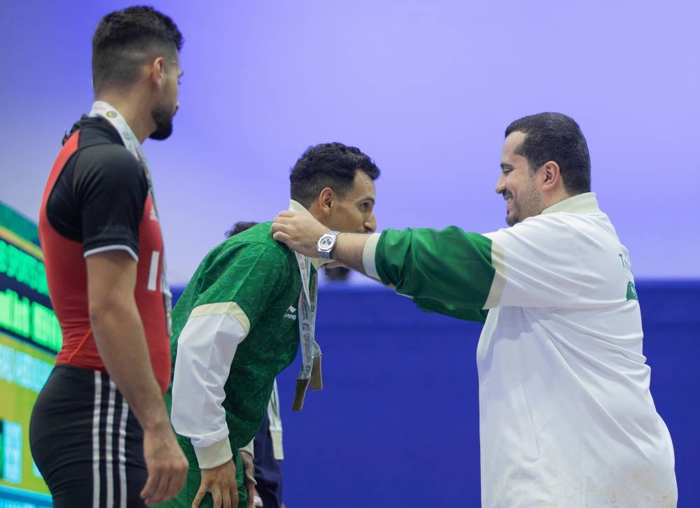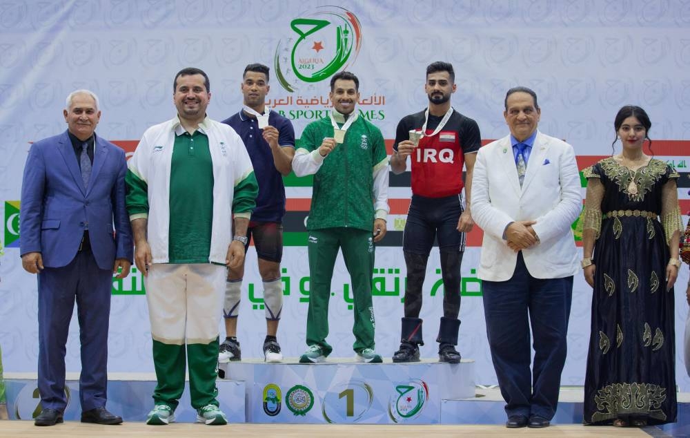 توج نائب رئيس اللجنة الأولمبية والبارالمبية السعودية رئيس الوفد السعودي في دورة الألعاب العربية الـ15 المقامة في الجزائر الأمير فهد بن جلوي بن عبدالعزيز، الرباع السعودي سراج آل سليم بميداليتين ذهبيتين في وزن 61 كيلوغراماً، بعد أن حقق آل سليم المركز الأول في منافسات الأثقال (الخطف) و(النتر)، ليرفع بذلك رصيد السعودية إلى 22 ميدالية، بعد أن حقق نجوم الأخضر اليوم (الثلاثاء) 11 ميدالية؛ ذهبيتان للأثقال، وفضية وأربع برونزيات للملاكمة، وبرونزيتان للمبارزة، وبرونزية واحدة للدراجات، وبرونزية للمصارعة.