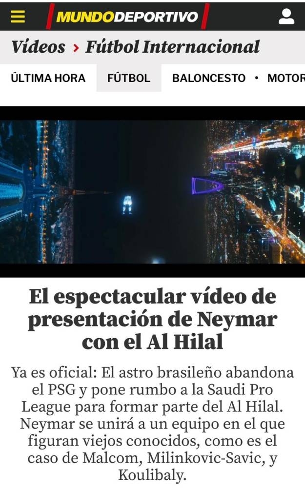 استحوذ خبر تعاقد نادي الهلال مع البرازيلي نيمار، قائد منتخب السامبا، اهتمامات كبيرة من الصحف والمواقع العالمية، نظير انتقاله من فريق سان جيرمان إلى الهلال. وقالت صحيفة «موندو ديبورتيفو» الإسبانية: «الهلال ينشر فيديو مذهلاً لإعلان التعاقد مع اللاعب الموهبة نيمار». وقالت صحيفة «ماركا» الإسبانية: «نيمار نجم آخر يغادر إلى كرة القدم السعودية، والنجم يوقع مع الهلال عقداً ضخماً». وأشارت إلى أن نيمار سيذهب للفريق الذي يلعب في صفوفه النجوم سافيتش ومالكوم وكوليبالي، في حين ذكرت قناة «dw» الألمانية: «نجم آخر يذهب إلى السعودية، وينتقل إلى الفريق الهلالي من أجل اللعب في البطولة التي تضم نجوماً عالميين مثل كريم بنزيما وكريستيانو رونالدو». فيما كتبت صحيفة «ديلي ميل» الإنجليزية: «لا تزال ثورة الكرة السعودية مستمرة ومتواصلة، وذلك بسبب انتقال نيمار إلى الهلال السعودي، وسيحصل النجم البرازيلي على 260 مليون جنيه إسترليني خلال مدة عقده، وتحدثت قناة «cnn» العالمية: «نيمار جونيور يؤكد انتقاله إلى الهلال ويقول أنا هلالي».