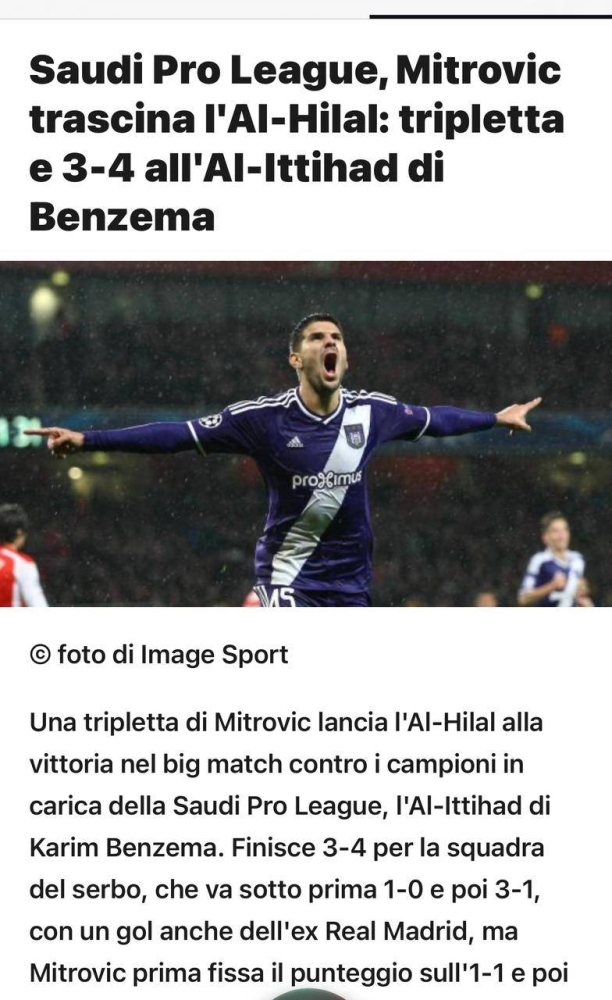 استحوذت مباراة «الكلاسيكو» التي جمعت الاتحاد «حامل اللقب» والهلال على ملعب الأمير عبدالله الفيصل بجدة ضمن مباريات الجولة الخامسة من دوري روشن والتي انتهت هلالية بنتيجة 4-3، على اهتمام الصحف ووسائل الإعلام العالمية، ووصفت نتيجة الريمونتادا بالـ «التاريخية» وعلى غرار المباريات الأوروبية، إذ كتبت صحيفة «tudn» المكسيكية: «خسر الاتحاد رغم الهدف المميز والرائع من الفرنسي بنزيما، وخسر الاتحاد صدارة الدوري والهلال استطاع الفوز على منافسه القوي خارج أرضه بغياب البرازيلي نيمار»، فيما قالت صحيفة «tuttomercatoweb» الإيطالية: «استطاع ميتروفيتش أن يسجل «هاتريك» ويقود الهلال للفوز 4-3 على الاتحاد بقيادة بنزيما». وأضافت: «ثلاثية ميتروفيتش جعلت بطل الدوري السعودي يخسر أمام الهلال».