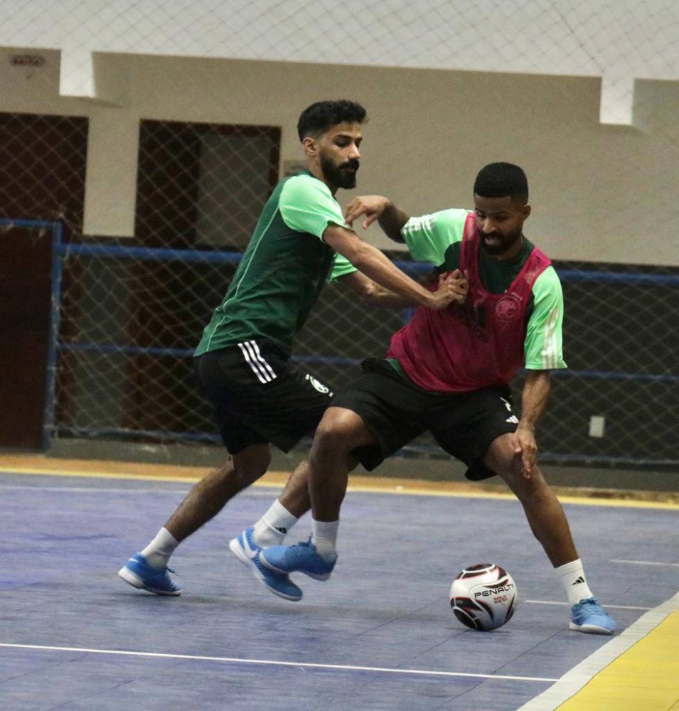 وأجرى لاعبو أخضر الصالات تدريباتهم على صالة سوروكابا بقيادة المدرب الإسباني أندريو بلازا، الذي عمد إلى تقسيم الحصة التدريبية إلى فترتين، إذ خضع اللاعبون لتمارين لياقية وبدنية في الفترة الأولى، فيما نفذ وطبق عددا من الجُمل الفنية والتكتيكية في الفترة الثانية، قبل أن تختتم الحصة التدريبية بإقامة مناورة على كامل الصالة شارك فيها اللاعبون جميعهم.