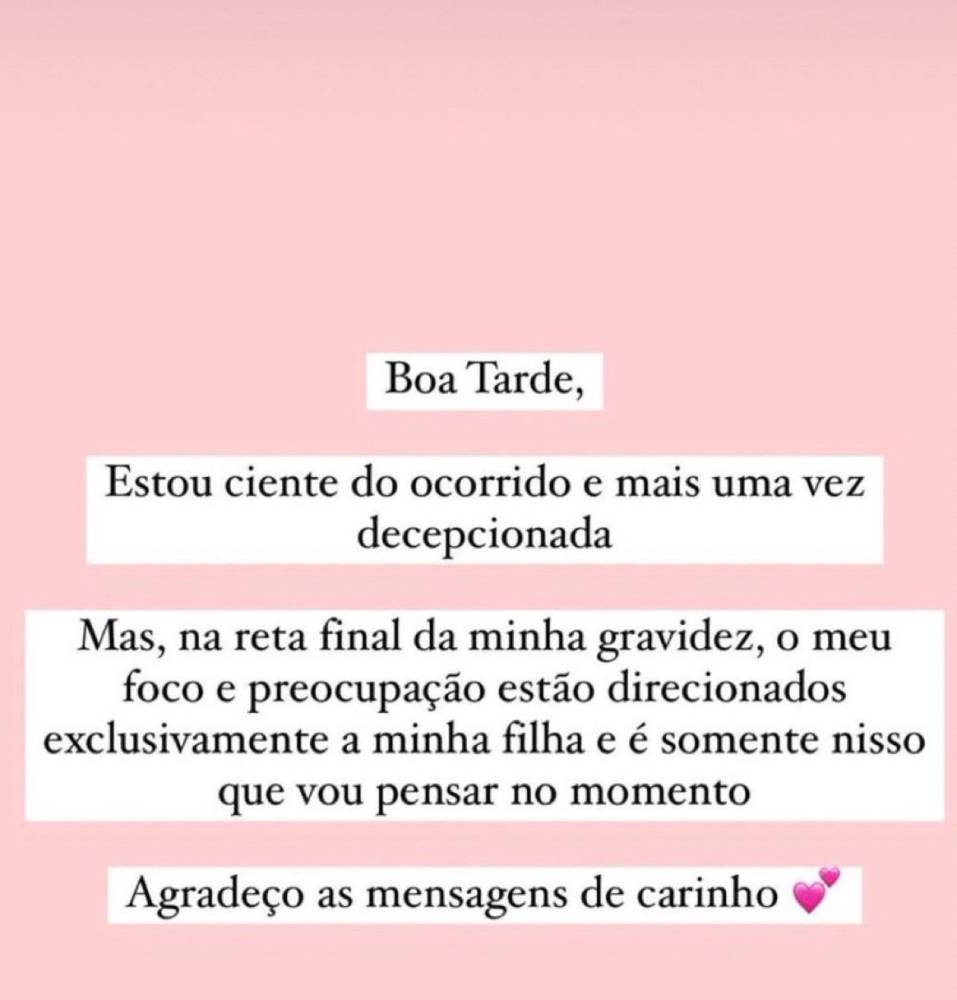 وكتبت زوجة نيمار عبر حسابها على «إنستغرام» «أنا على علم بما حدث في الفترة الأخيرة وأشعر بخيبة أمل مرة أخرى لكن حملي بالمرحلة الأخيرة هو ما يشغل بالي وسأوجه كل تفكيري واهتمامي إلى ابنتي فقط»، ما يؤكد أن العلاقة متوترة مع نيمار ودفعها إلى إلغاء متابعة حساب نادي الهلال.