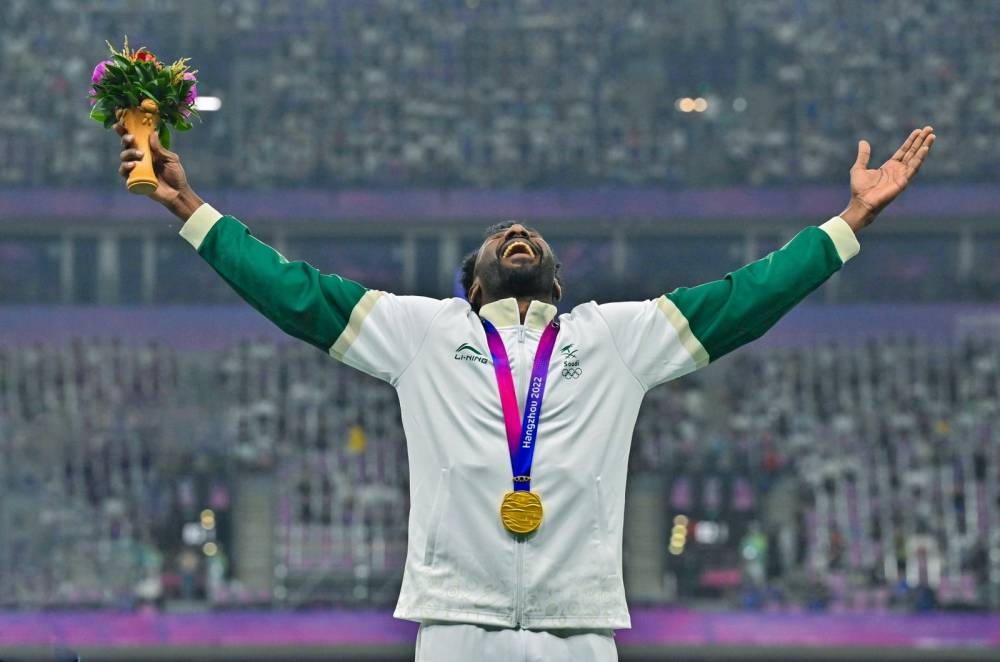وجاء إنجاز الأسطوري مسرحي عقب فوزه بالمركز الأول والميدالية الذهبية لسباق 400 متر بزمن 45.55 ثانية، ليعيد للأذهان إنجازه التاريخي قبل نحو 10 أعوام، عندما حقق أول ميدالية سعودية في السباق نفسه في الدورة الآسيوية السابعة عشرة (إنشون 2014).