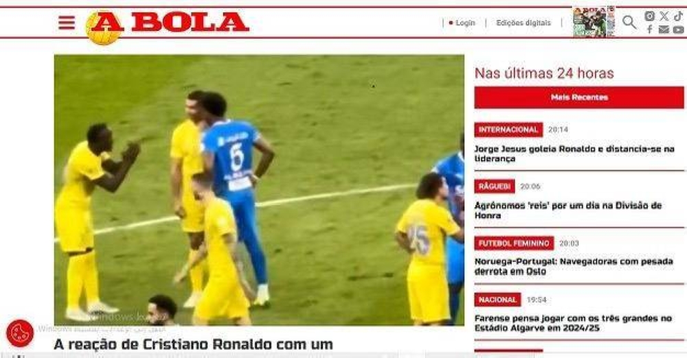 صحيفة «abola» البرتغالية الشهيرة نقلت الحادثة وكتبت عنها عبر صفحتها وقالت: لم يعجب الدولي البرتغالي الطريقة التي تصدى بها لاعبو فريق خورخي جيسوس للركلة الحرة، في وسط الملعب، وهو ما أثار ردة فعل من علي البليهي، الرقم 5 في الهلال، الذي اقترب من قائد النصر وصرخ في وجهه، وكانت ردة فعل كريستيانو رونالدو هي الإشارة إلى أنه لا يسمع جيداً، وهو يبتسم، كما أن زميله ساديو ماني كان يقوم بالتصفيق لمدافع الهلال كونه خدع الحكم بالتمثيل.