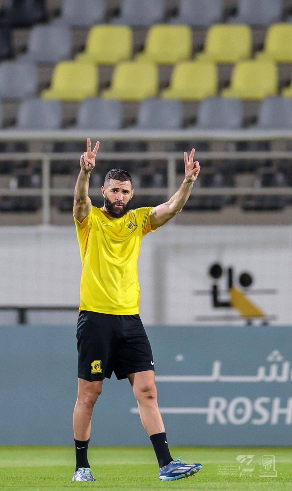 قائد الاتحاد كريم بنزيما في التدريبات قبل مواجهة أوكلاند سيتي.
