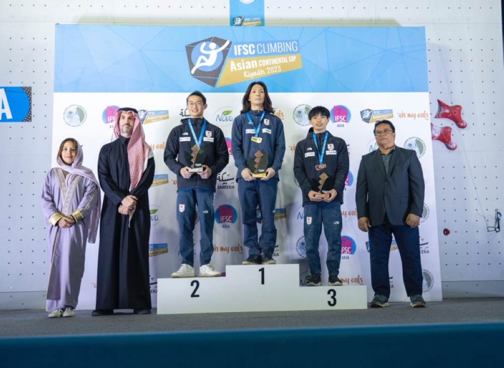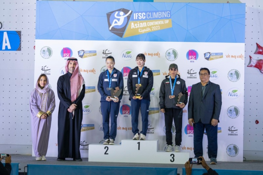 توج رئيس مجلس إدارة الاتحاد السعودي للتسلق والهايكنج الأمير بندر بن خالد آل سعود، والأمين العام للاتحاد الآسيوي للتسلق الرياضي راسيب اسنين، اللاعبين الفائزين بالمراكز الأولى في منافسات كأس آسيا للتسلق، التي أقيمت في الرياض لأول مرة للفترة من 12 - 16 ديسمبر 2023 في مجمع الأمير فيصل بن فهد الأولمبي.