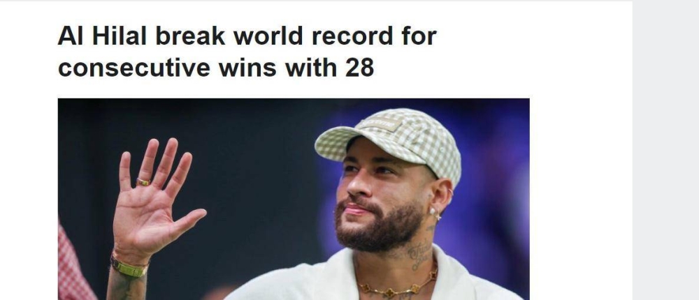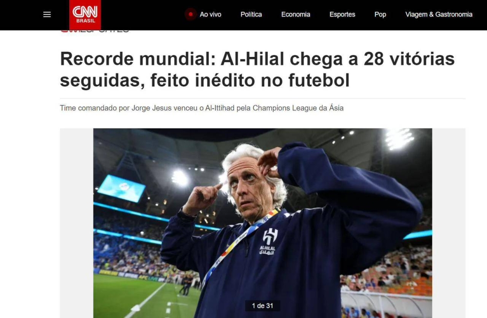 وقالت قناة «CNN»: «رقم قياسي عالمي يحققه ⁧الهلال‬⁩ السعودي بـ28 انتصارًا متتاليًا، وهو الإنجاز الأول في كرة القدم لم يسبق لأي فريق تحقيقه». وأضافت: «الفريق بقيادة جورجي جيسوس يواصل الإبداع والانفراد بالأرقام القياسية».