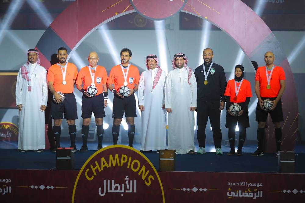 توج فريق صقر أكادير المغربي بلقب النسخة الأولى لبطولة كرة القدم للصالات ضمن فعاليات موسم القادسية الرمضاني، بعد تغلبه في المباراة النهائية على فريق مجموعة سعيد غدران بنتيجة 3-2، سجل أهدف أكادير، محمد اعلا ثلاثة أهداف «هاتريك»، فيما سجل هدفي مجموعة سعيد غدران فلاح عباس، وبرونو، وحصل الفريق البطل على كأس البطولة والميداليات الذهبية ومبلغ 100 ألف ريال، وحصل الوصيف على الميداليات الفضية ومبلغ 50 ألفا. وشارك في حفل تتويج الفائزين عضو مجلس إدارة شركة نادي القادسية مساعد الزامل، بحضور الرئيس التنفيذي لنادي القادسية نايف آل صاحب، والمشرف العام على موسم القادسية الرمضاني فهد الصيعري، حيث حصل زياد أمهيش لاعب فريق أكادير على جائزة أفضل لاعب في البطولة، وحصل على لقب هداف البطولة اللاعب ديمورا جوس لاعب فريق سعيد غدران، ونال جائزة أفضل لاعب في البطولة اللاعب عمر لاكواسي من فريق صقر أكادير المغربي، وحصل على جائزة أفضل حارس مرمى عبدالله الشمري حارس مرمى فريق مجموعة سعيد غدران.