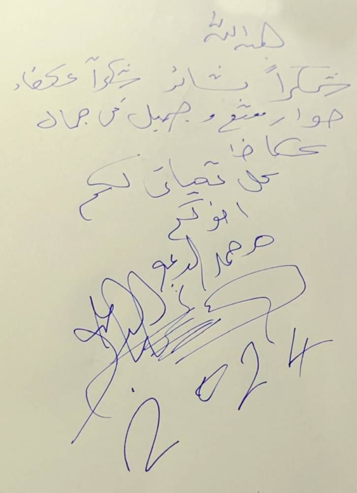 •• أبو ناصر، المُفكر خارج الصندوق، وليس مستغربا على معالي المستشار هذا النجاح وآخر ما فعله قناة الهلال، فهو أسعد العالم العربي، والرياض أصبحت اليوم وجهة سياحية مهمة في العالم، ولن أوفيه حقه. وأشكره مقدماًً بالنيابة عن كل الهلاليين على حفل اعتزال محمد الشلهوب ضمن فعاليات موسم الرياض.