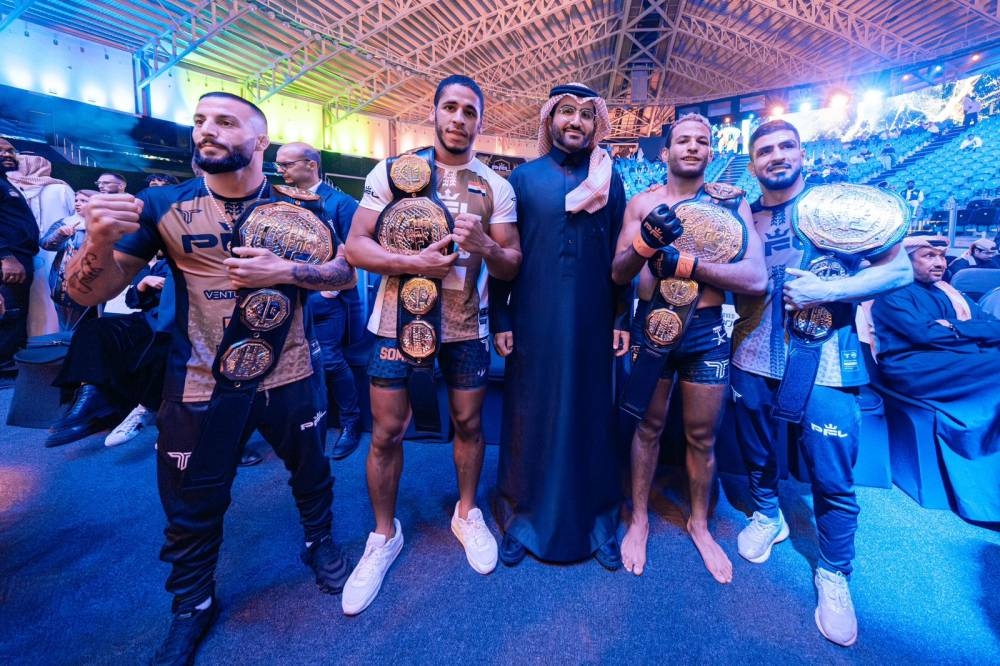 اختتمت مساء الجمعة في الرياض منافسات نهائيات دوري المقاتلين المحترفين بإقامة مواجهات عالمية قوية، شهدت تتويج الأبطال في الحدث الذي تستضيفه المملكة لأول مرة بتنظيم من الاتحاد السعودي للفنون القتالية المختلطة بالتعاون مع رابطة دوري المقاتلين المحترفين العالمية (PFL) وبإشراف من وزارة الرياضة، وذلك في الصالة الداخلية لجامعة الملك سعود.