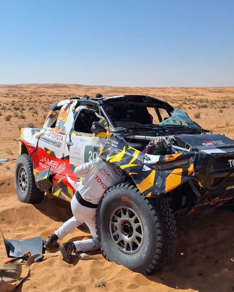 أكمل السباق رغم انقلاب سيارته