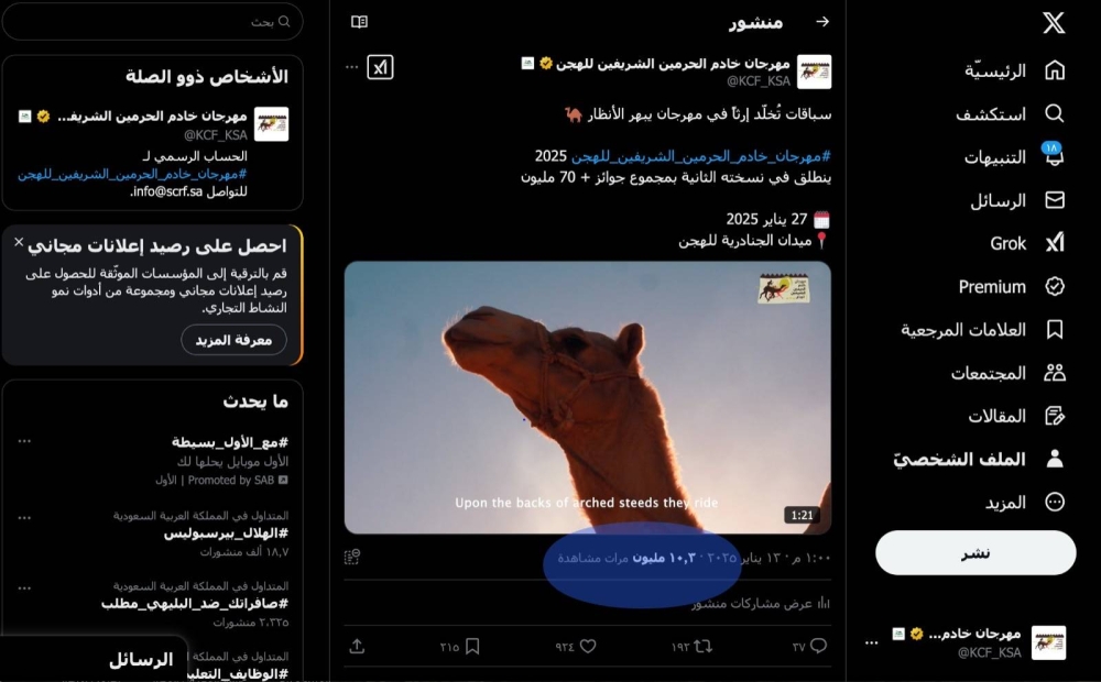 رقم قياسي جديد.. أكثر من 33 مليون مشاهد لمهرجان خادم الحرمين الشريفين
