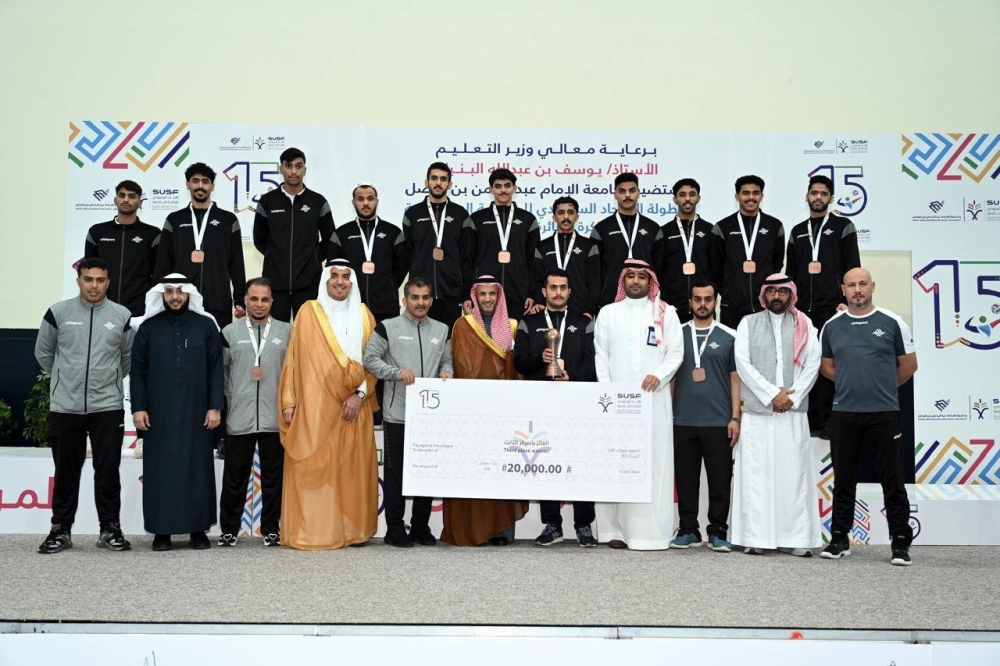 وحصل فريق جامعة الإمام عبدالرحمن على الميداليات الذهبية وكأس البطولة، إضافة إلى جائزة مالية قدرها 50 ألف ريال، بينما نال فريق جامعة الملك عبدالعزيز الميداليات الفضية وجائزة مالية بقيمة 30 ألف ريال، أما المركز الثالث فكان من نصيب جامعة القصيم، التي تفوقت على جامعة الملك خالد بنتيجة 3-1، لتحصد الميداليات البرونزية ومبلغ 20 ألف ريال.