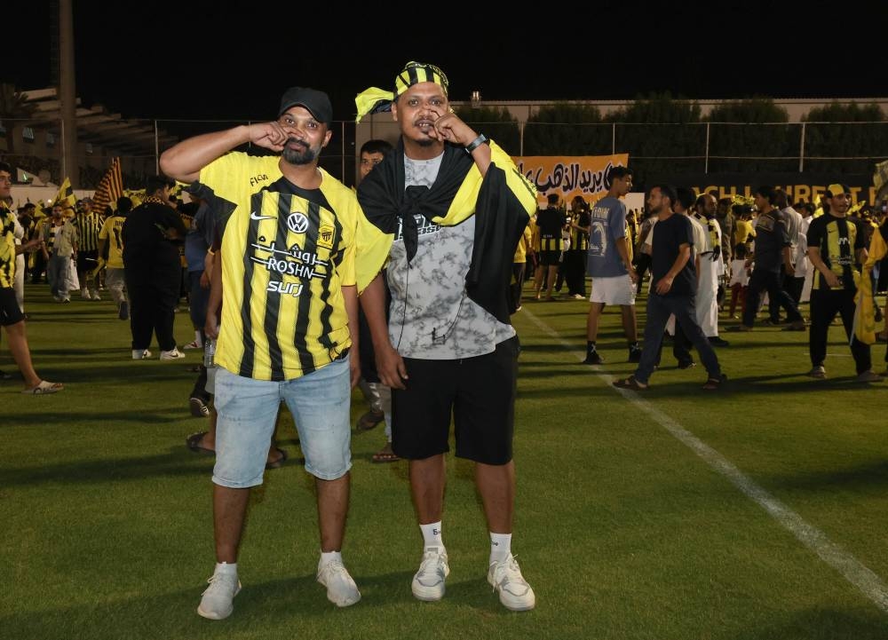 A delightful evening and a large crowd filled the stands of King Abdullah Sports City in Buraidah, which was packed with fans, including artists, former players, and a massive audience that came from all over the Kingdom to celebrate the title and the 14th league win in the history of Al-Ittihad. In the city of "Bride," Jeddah, the fans immediately headed to the club's headquarters upon the final whistle to celebrate the title in their own special way with fireworks and chants dedicated to Al-Ittihad, while in other cities of our beloved Kingdom, they rejoiced in the Roshan Saudi League title, which the fans dubbed "the burning ten."