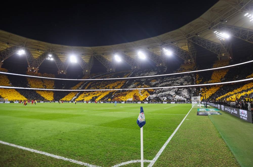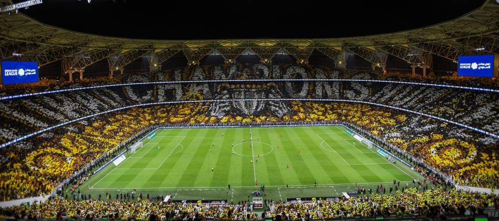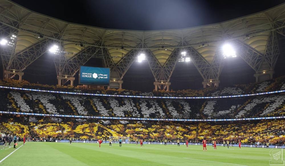 Al-Ittihad fans presented a stunning artistic display in the stadium stands on the night of Al-Amid's crowning as champions of the Saudi Pro League, with the fans' creativity showcased through four tifos that the Al-Ittihad supporters interacted with throughout the course of the last match for the Al-Ittihad team against Damak, which ended in a victory for Al-Amid with a score of one goal to none, scored by player Bergwijn, bringing Al-Ittihad to 83 points and crowning them with the league title for the current season.
