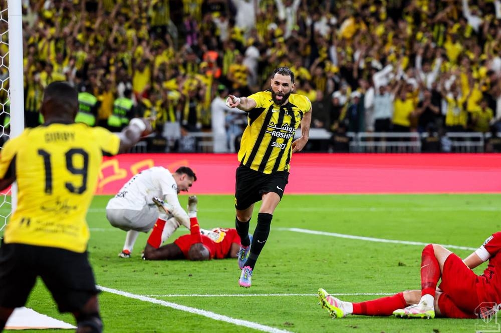 After four days of lifting the Roshen Professional League Cup, Benzema returned once again and confirmed his right to lift the King’s Cup, after leading his team to a deserved victory over Al-Qadisiyah in the match held at King Abdullah Sports City Stadium in Jeddah, with the presence of Prince Mohammed bin Salman bin Abdulaziz Al Saud, Crown Prince and Prime Minister — may God protect him. Benzema added his scoring touches once again, as he scored two goals, having previously scored 11 goals in the final stages of local, continental, and global championships, including two goals on Saudi soil in the Spanish Super Cup, while Al-Hilal was his last victim in the finals when he scored against Abdullah Al-Maiouf in the 2022 edition of the FIFA Club World Cup.