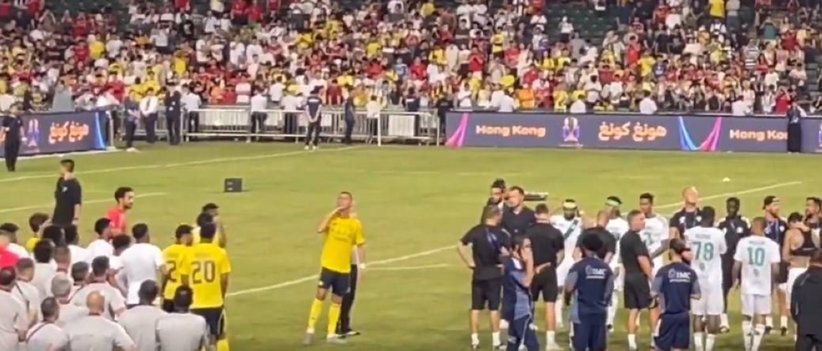رغم خيبة أمل خسارة لقب كأس السوبر السعودي 2025 أمام الأهلي أمس (السبت)، رفض النجم البرتغالي كريستيانو رونالدو، قائد النصر، الاستسلام للحزن، وأصر على تحفيز زملائه قبل الصعود إلى المنصة لاستلام الميداليات الفضية.