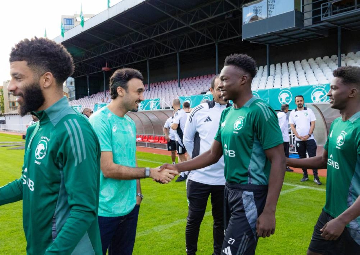 والتقى وزير الرياضة نجوم «الأخضر» برفقة رئيس الاتحاد السعودي لكرة القدم ياسر المسحل، وألقى الأمير عبدالعزيز بن تركي كلمة تحفيزية للاعبين قبل بدء التدريبات، كما التقى وزير الرياضة قائد «الأخضر» سالم الدوسري الذي لم يشارك مع زملائه في التدريبات لشعوره بآلام بسيطة.