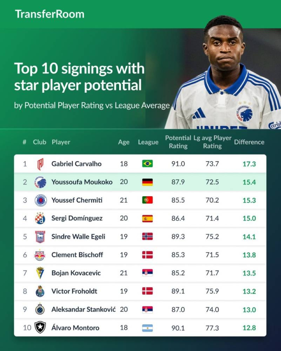 ويُعد هذا التصنيف من المواقع المرجعية المعروفة على مستوى الأندية العالمية في تحليل أداء اللاعبين وقياس إمكاناتهم المستقبلية، ما يسلط الضوء على جودة المواهب الموجودة في الملاعب السعودية، وقدرتها على لفت الأنظار دولياً.