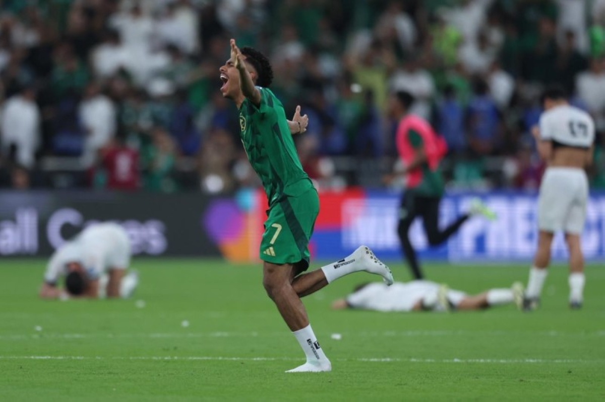 In the "Al-Inma" stadium, more than 60,000 fans celebrated our national team’s qualification for the finals after a goalless draw with Iraq, topping Group B on goal difference over the runner-up "Black Lions of the Tigris." The qualification came with merit and deserving, as all the stars of the Green shone, and goalkeeper Nawaf Al-Aqidi crowned this brilliance with his wonderful save of the free kick executed perfectly by Hassan Abdulkarim, but Al-Aqidi was right on time, soaring to deflect it away from the Saudi Green's den, and with it, the celebrations began… May your joy last, O dearest homeland.