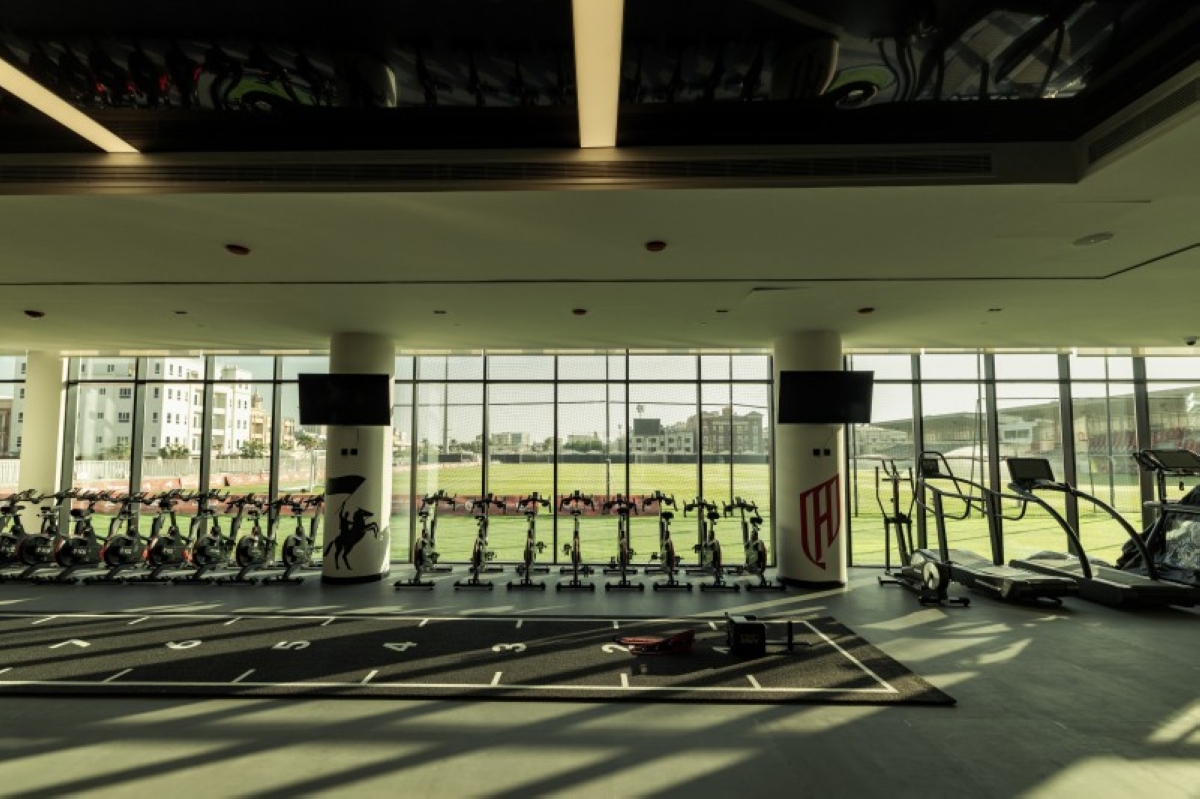 The center serves the first football team alongside a specialized team in performance science and sports medicine. It spans an area of 6,000 square meters and includes a gym and fitness area of 450 square meters, an indoor pitch of 550 square meters, a soundproof tactical briefing room, complete changing rooms for 32 players, and a recovery area that includes therapeutic pools, a jacuzzi, a steam room, and a sauna. It also features an advanced medical clinic with 6 treatment beds, private recreational lounges for players including a barbershop, and a dining hall of 300 square meters that accommodates 85 people, as well as administrative offices and meeting rooms covering 400 square meters, in addition to an operations and media center that accommodates more than 70 employees.