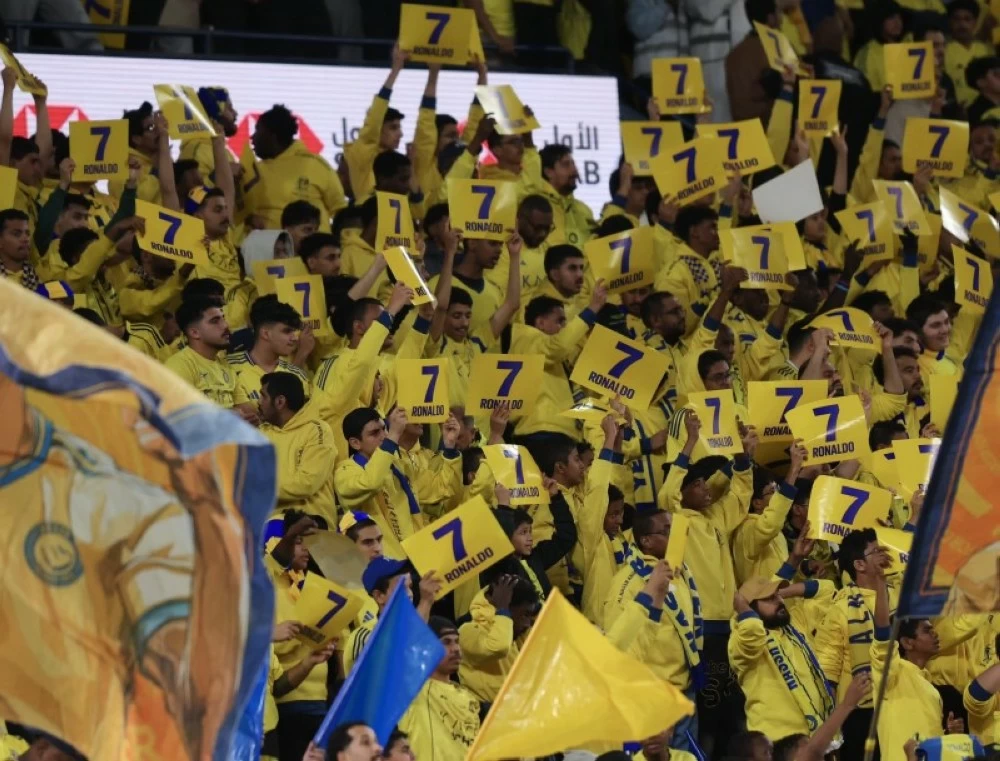 In the seventh minute of the match, Al-Nassr fans raised banners bearing the name and jersey number of Ronaldo (7) while chanting his name, in a clear message of support for the team captain.