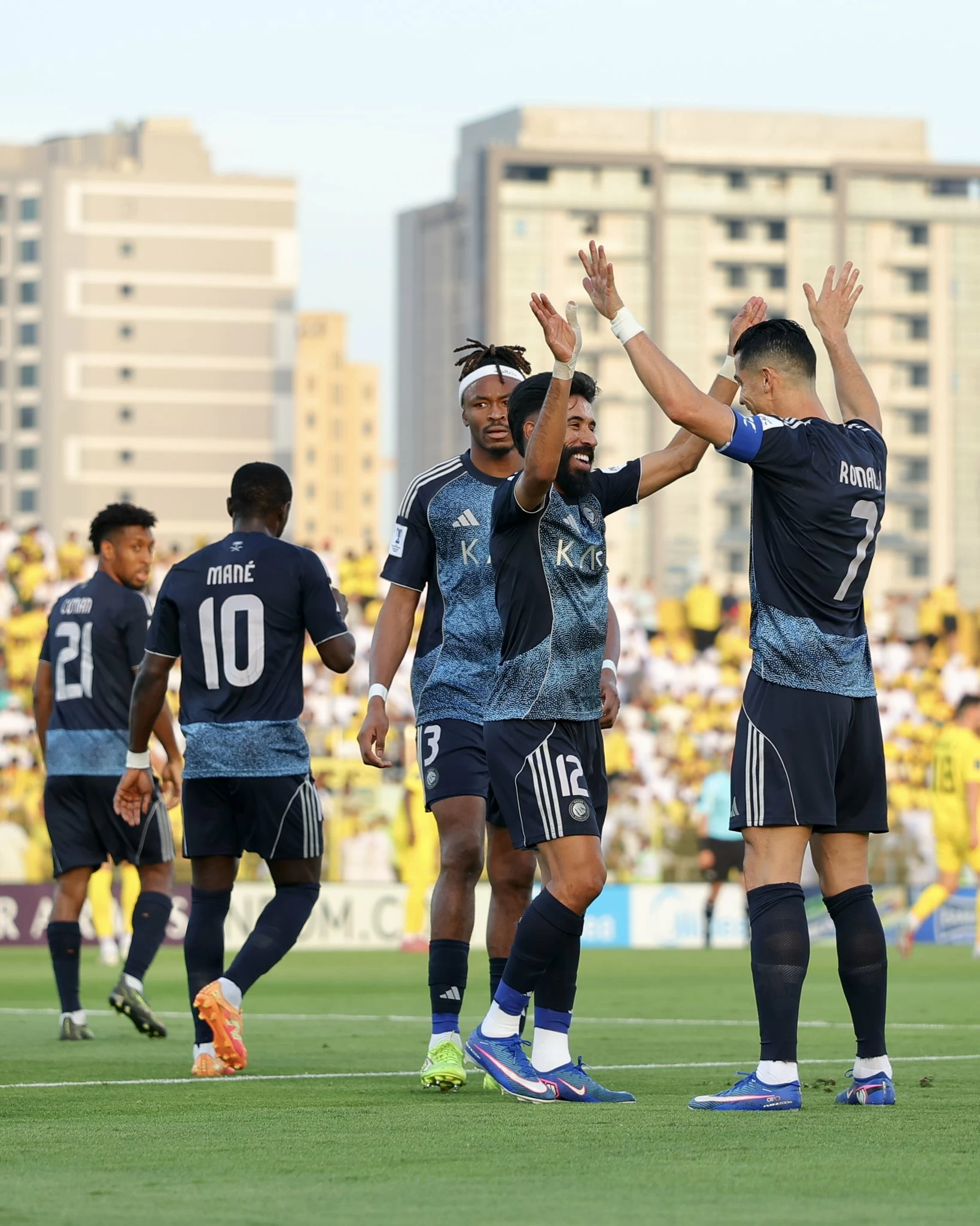 The match witnessed an early dominance by Al-Nasr, led by the Portuguese legend Cristiano Ronaldo, who did not wait long to make his first scoring mark after receiving a clever pass from Nawaf Boushal, which Ronaldo shot with his right foot into the bottom right corner of the goal, past goalkeeper Mohammed Al-Qaydi (11th minute). From a corner taken perfectly by Joao Felix, defender Inigo Martinez managed to score the second goal for Al-Nasr by heading the ball into the net (26th minute). Joao Felix returned to deliver a high cross that defender Abdulilah Al-Amri soared to head into the left side of the goal for Al-Nasr's third goal (26th minute). In the second half, Sadio Mane capped off the goal fest with a wonderful goal after substitute Abdullah Al-Hamdan intercepted the ball in midfield and passed it to Sadio Mane between the defenders, allowing Mane to face the goalkeeper, skillfully bypass him, and shoot into the net for Al-Nasr's fourth goal (80th minute), ending the match with Al-Nasr winning four to none.