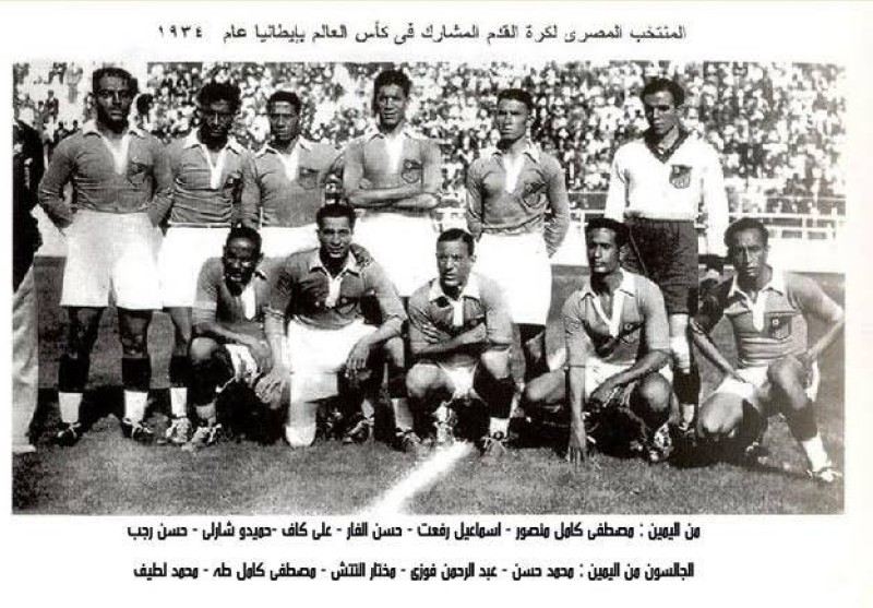 والصورة أدناه توضح أسماء لاعبي منتخب مصر الذين كان لهم قصب السبق في أول مشاركة عربية في تاريخ المونديالات.