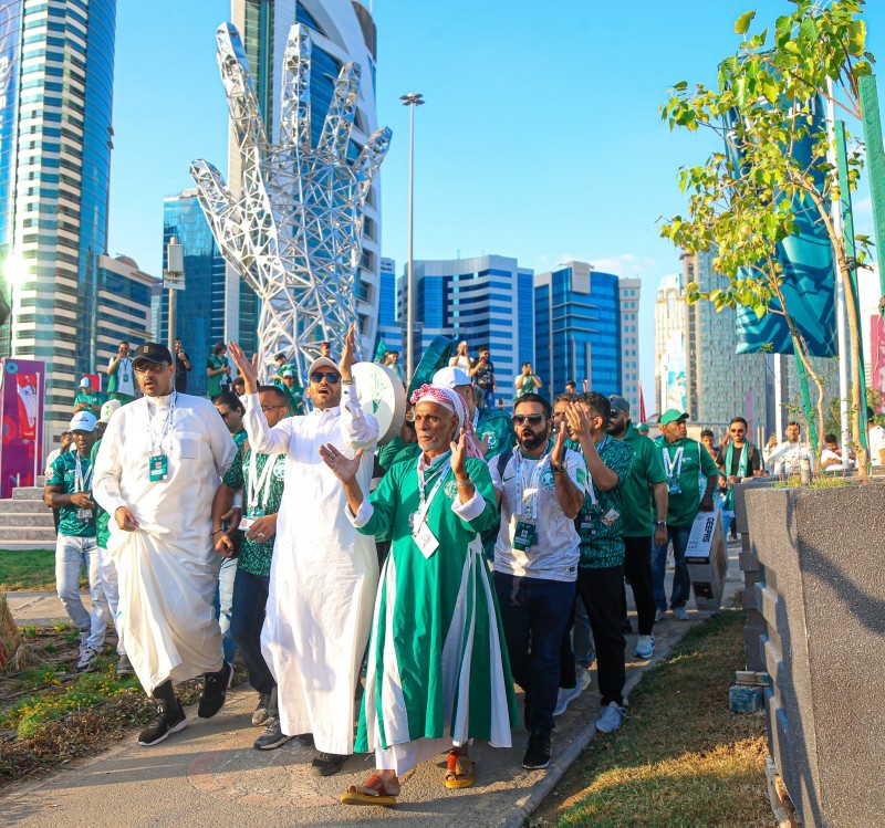 تنطلق المسيرة صباح اليوم عند الساعة الثامنة صباحاً، وتستبق مواجهة المنتخب السعودي ومنتخب الأرجنتين، في الجولة الأولى من دور المجموعات بالمونديال.
