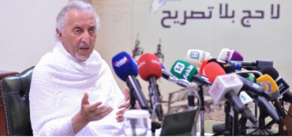 مکہ مکرمہ کے گورنر اور مرکزی حج کمیٹی کے چیئرمین شہزادہ خالد الفیصل سعودی میڈیا سے گفتگو کررہے ہیں-