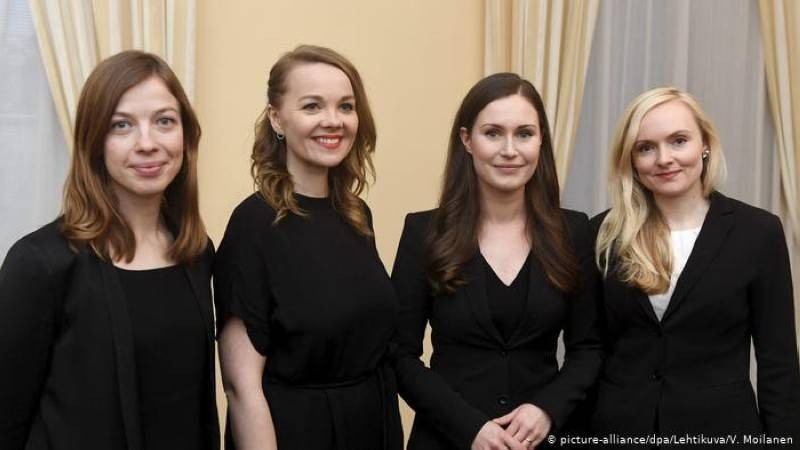 وتقود مارين ائتلافا من اليسار والوسط تقوده 4 نساء تقل أعمارهن عن 35 عاماً، هن: رئيسة حزب الوسط كاتري كولموني، (32 عاماً)، وزعيمة حزب الخضر التي ستستمر في عملها كوزيرة للداخلية ماريا أوهيسالو (34 عاماً)، ورئيسة تحالف اليسار لي أندرسون (32 عاماً)، وزيرة التعليم، بينما تتولى زعيمة حزب الشعب آنا مايا هنريكسون منصب وزير العدل، وهي الوحيدة التي يتخطى عمرها الـ50 عاماً.