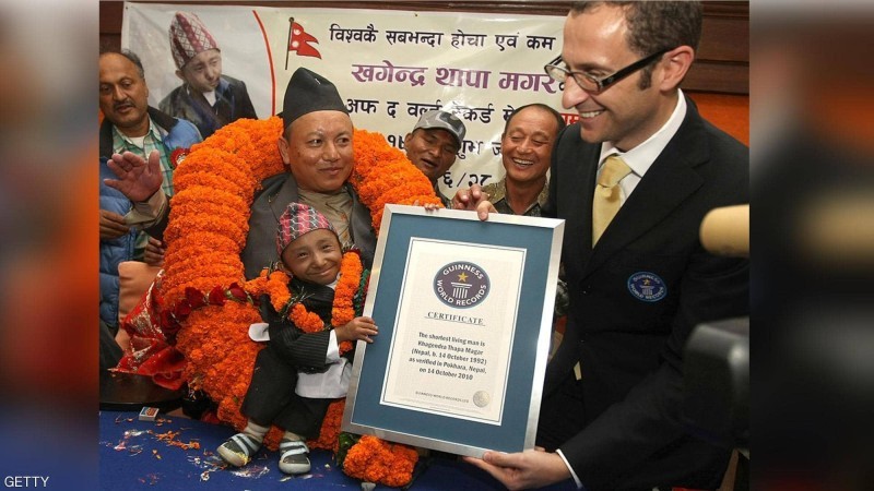 بعدما اكتسب شهرة عالمية واسعة بسبب قصر قامته، توفي صاحب الـ67 سنتيمترا، حاصد لقب أقصر رجل بالعالم النيبالي خاجيندرا ماغار عن 27 عاماً، إثر إصابته بالتهاب رئوي حاد. ونعت موسوعة «غينيس» ماغار الذي نال اللقب عام 2010، عند بلوغه 18 عاماً. لكنه خسر اللقب لاحقا بعدما حطم مواطنه «شيندرا دانعي» رقمه القياسي بطول 54.6 سنتيمتر. وقال والد ماغار: «وقت ولادته كان صغيرا جدا لدرجة وضعه في راحة اليد». وبصفته أقصر رجل بالعالم، سافر ماغار 12 دولة للترويج للسياحة في بلاده.