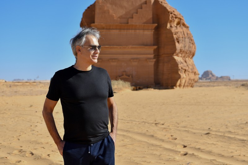 للعام الثاني على التوالي، يحيي مغني الأوبرا العالمي أندريا بوتشيلي، غدا (الجمعة)، حفلا فنيا ضخما على مسرح «مرايا»، ضمن مهرجان «شتاء طنطورة» في محافظة العُلا، الذي تقدم من خلاله مجموعة متنوعة من الفعاليات التراثية والثقافية والفنية العالمية.