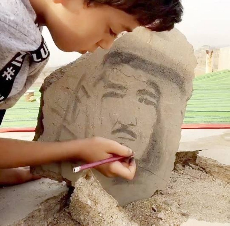 الطفل شاذي يبدع في رسم صورة الملك سلمان بن عبدالعزيز.