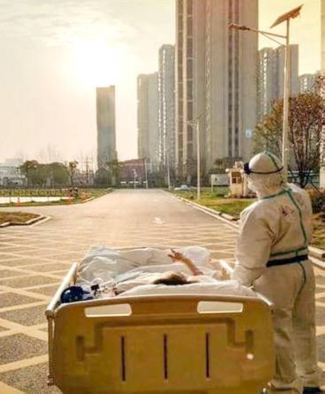 حققت صورة، بدت غريبة للوهلة الأولى، انتشارا واسعا على مواقع التواصل، إذ جمعت طبيبا بالزي الواقي من فايروس «كورونا»، بجانب مريض على فراش، أثناء إشارتهما إلى قرص الشمس لحظة الغروب، في أحد مستشفيات ووهان «بؤرة كوفيد». ووفق صحيفة «الشعب» الصينية، أنعشت اللقطة الآمال في ظل الفوبيا التي يسببها انتشار الفايروس في أرجاء العالم. ويقول طبيب الصورة ليو كاي: «كنا ننقل مصابا بالفايروس (87 عاماً) يعاني التهابا رئويا حادا، لغرفة أشعة ملحقة بمبنى المستشفى، ولدى عودتنا توقفنا برهة أمام مشهد أشعة الشمس الذهبية، للاستمتاع بلحظات الغروب المذهلة التي لم نرها منذ فترة طويلة».