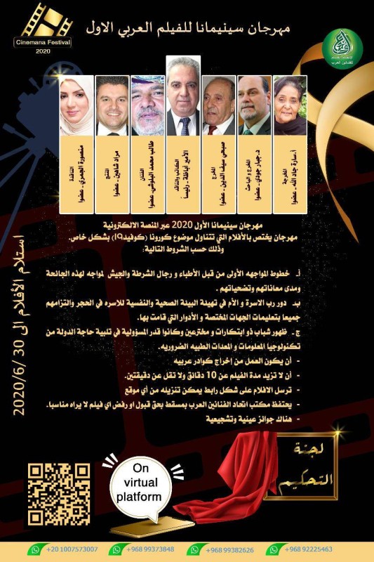 كشف أمين عام اتحاد الفنانين العرب المخرج السعودي د. عمر الجاسر رئيس جمعية المنتجين السعوديين بمنطقة مكة المكرمة عن انطلاق مهرجان «سينمانا 2020» أخيرا، مؤكدا أن آخر موعد لاستقبال الأعمال 30 يونيو الجاري، على أن تراعى الشروط والضوابط التي تتضمن أن يكون العمل إنتاجا عربيا 100%، وألا تزيد مدته على 10 دقائق، وترسل الأفلام على هيئة رابط يمكن تنزيله من أي موقع على واتساب الجوالات المرفقة في الإعلان.