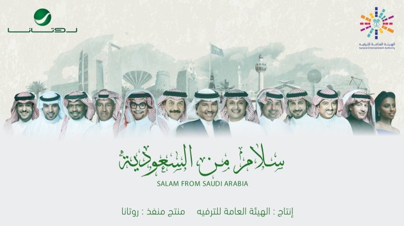 كسر 13 فنانا عزل الجمود الفني في الفترة الماضية، بالعمل الفني المشترك بين «الهيئة العامة للترفيه» وروتانا، أغنية «سلام من السعودية». والأغنية من فكرة رئيس مجلس إدارة الهيئة العامة للترفيه تركي آل الشيخ، الذي تابع مراحل إنتاج العمل ووقف على جميع تفاصيلها.